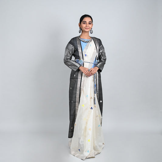 Chandrima Black Checks Butti Jacket Emb belt