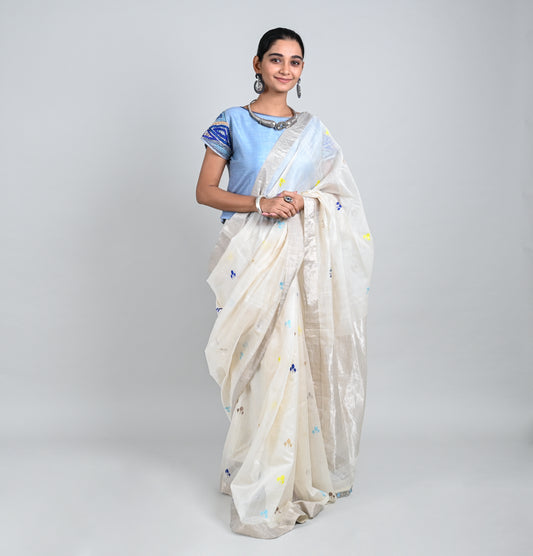 Sold outChandrima White Tikka Butti Saree