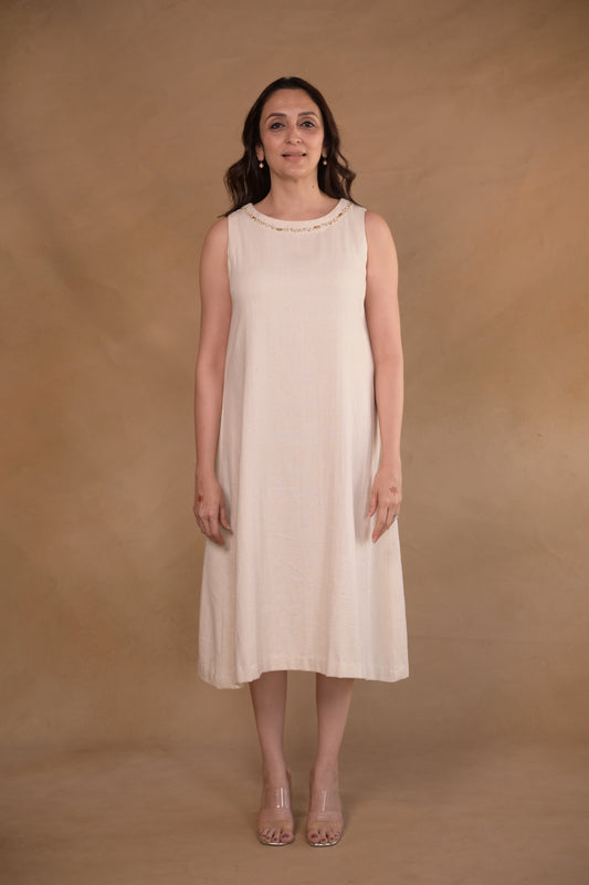 Dress, Herringbone With Embroidery