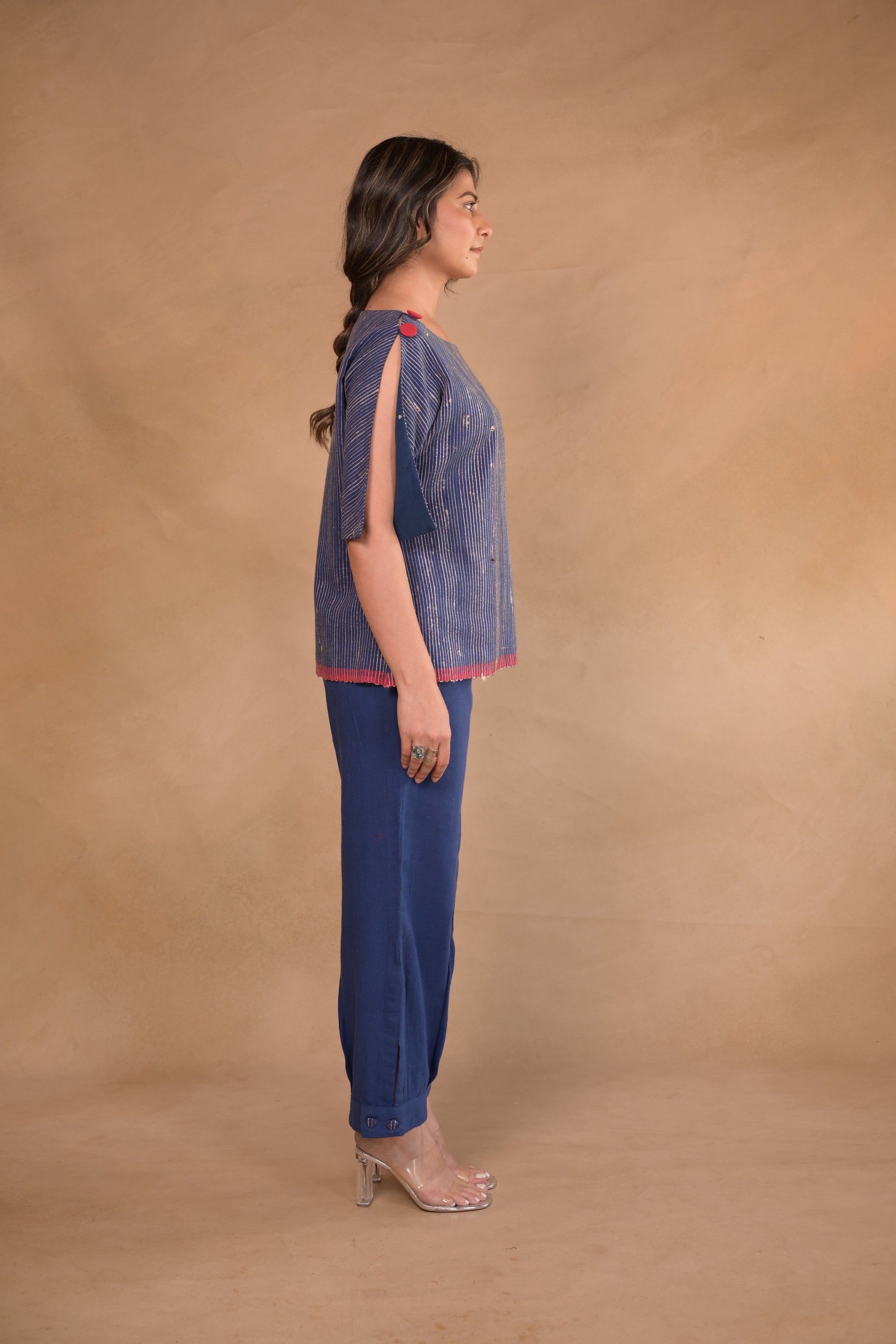 Tunic, with shoulder button detail in Tassar x Kala Cotton